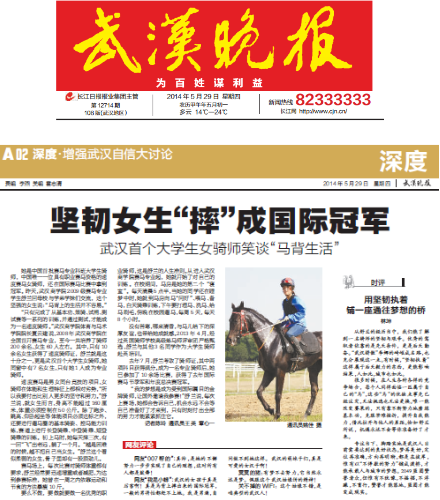 本网讯 5月29日,武汉晚报2版“深度”“增强武汉自信大讨论”,以半个版的篇幅,介绍我校赛马毕业生、中国唯一具有职业赛...