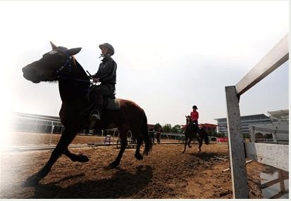 图为:女大学生准骑师英姿飒爽 记者佟建国摄