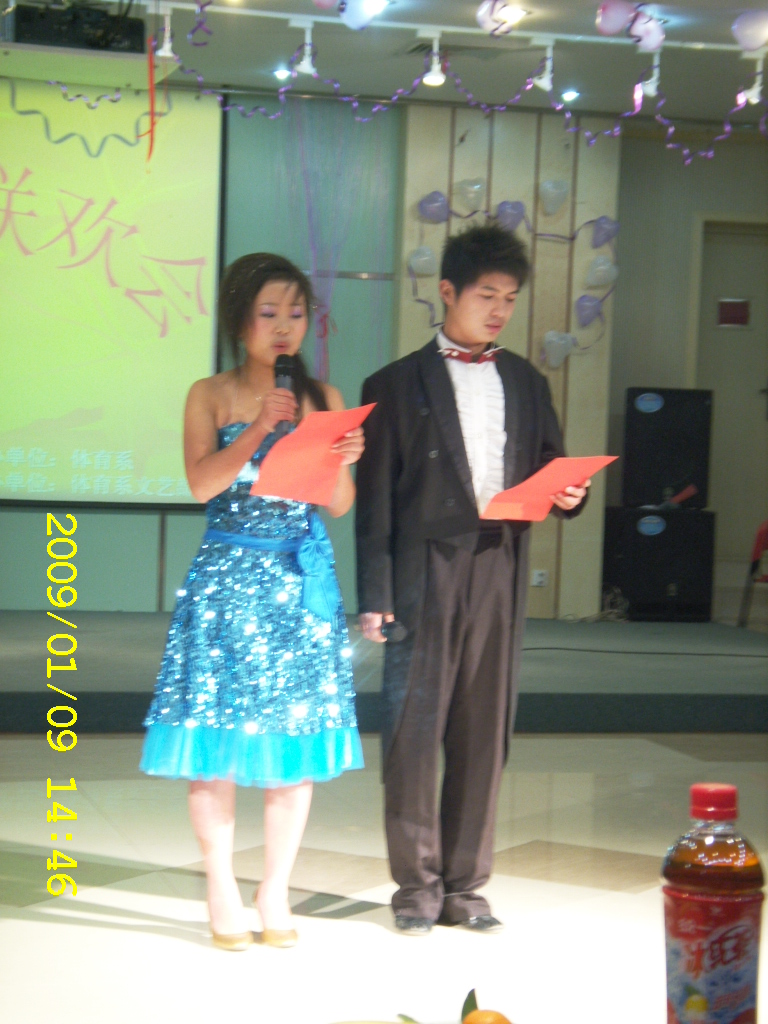 伴随着新年的钟声敲响,迎来了体育系2009年的第一个联欢会。联欢会里同学的表现异彩纷呈,有时尚的T台秀、有朝气的舞蹈、有幽默的小品、还有异域串烧、炫目的街舞、玄妙的剑术,尽展我们体育系同学的风采、个性。