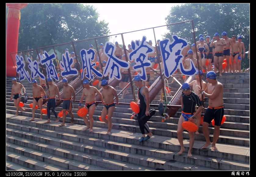 “商院商院,勇往直前!”响亮的口号在汉阳门码头前回荡,伴着震天的威风锣鼓,7月16日上午,60名游泳健儿组成的我校方阵在武昌汉阳门下水,代表我校参加第36届国际横渡长江活动。