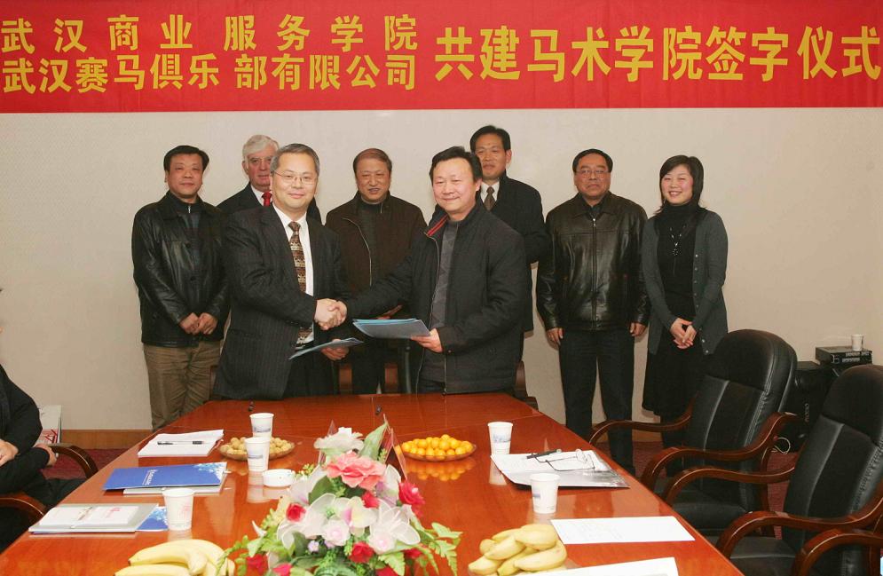 1月19日,我校与武汉赛马俱乐部有限公司签定了共建马术学院的协议,由此,全国高校第一个马术学院在我校问世。这是我校继在全国率先培养赛马人才后,在赛马教育上又一新的举措。