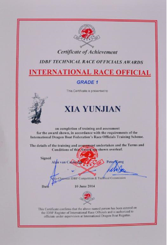 本网讯6月17日,武汉商学院体育与马术学院院长夏云建教授接到国际龙舟联合会主席签发的证书,获准成为了国际级龙舟裁判。水上运动大省湖北,结束了没有国际级龙舟裁判的历史。