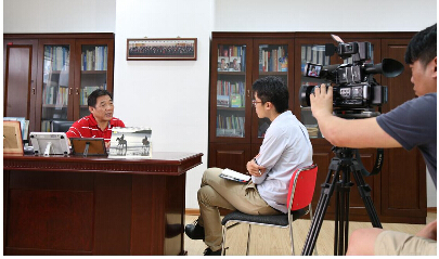 26日,台湾无线卫星电视台TVBS《中国进行式》栏目两名记者来到武汉商学院,采访赛马人才培养。