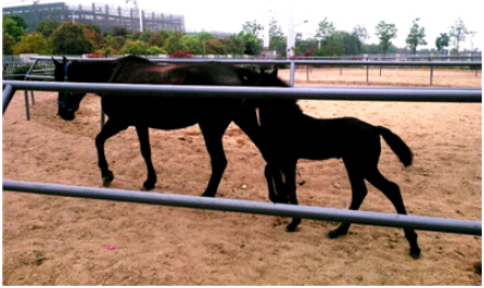 这是小雷鸣迈向外面世界的第一步。刚出门时,它还有些抗拒陌生的环境,不愿再多走一步。当天马场值班护理、2013级赛马专业黄万圣同学将它的“妈妈”弗利卡牵来,小雷鸣低着头跟在“妈妈”后面,试探性地四处闻闻嗅嗅,几乎将马场闻了个遍,熟悉了外面的味道,很快兴奋起来,不再在“妈妈”后亦步亦趋,扬起尾巴,撒欢似地跑了起来,四蹄生风。它还不时地昂首嘶鸣,由于才出生两周,叫声也像婴儿,奶声奶气又尖又细。