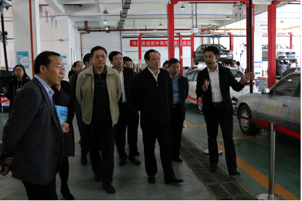省教育厅厅长刘传铁(左三)参观汽车实训中心