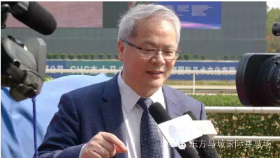 武汉马术协会会长、武汉商学院校长李作清在发布会现场接受采访