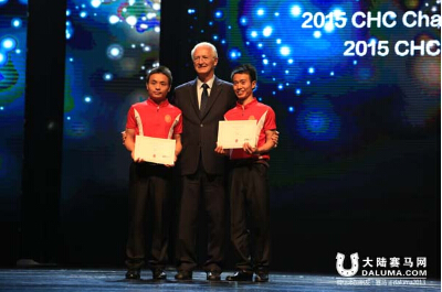武汉商学院毕业生覃勇(右)和陈黎(左)获得“2015中国梦计划杰出骑师奖”