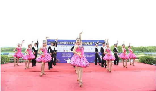 本网讯 “速度与时尚相结合,伴随着优雅的拉丁舞蹈,朵朵粉玫瑰纵情绽放。”4月23日,2016年武汉速度赛马公开赛第4个赛马日——“激情与时尚”主题赛马日在武汉东方马城正式开幕,武汉商学院体育舞蹈队以精彩的团体舞为比赛拉开序幕。