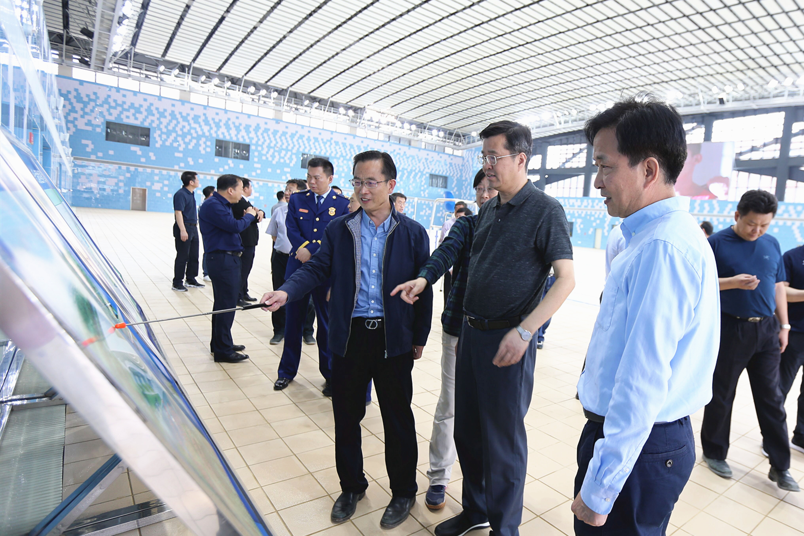 本网讯 5月4日上午,副市长陈邂馨一行来我校调研军运会场馆建设工作。校长王清华,副校长孙步月、张石及相关职能部门负责人陪同。