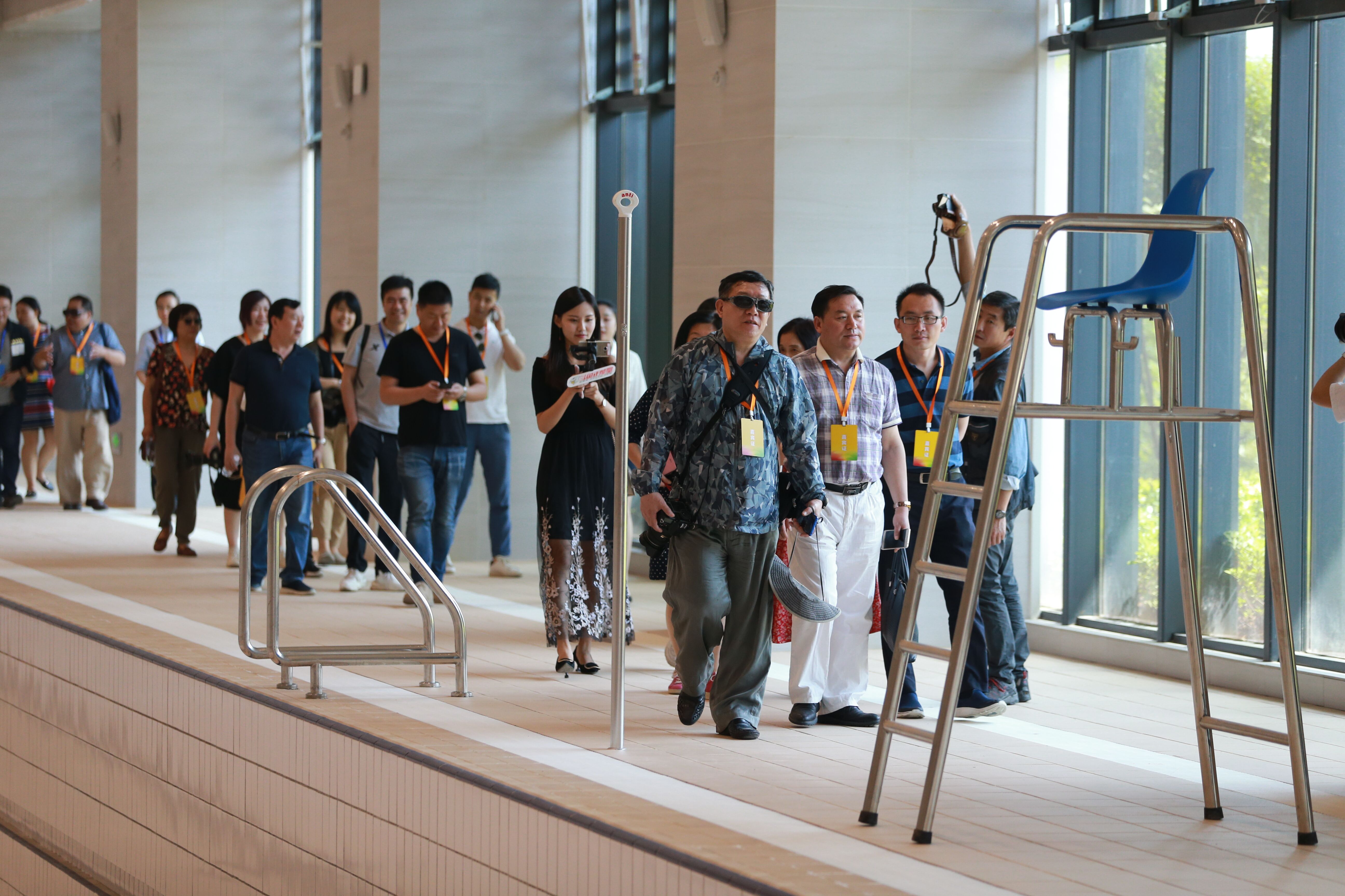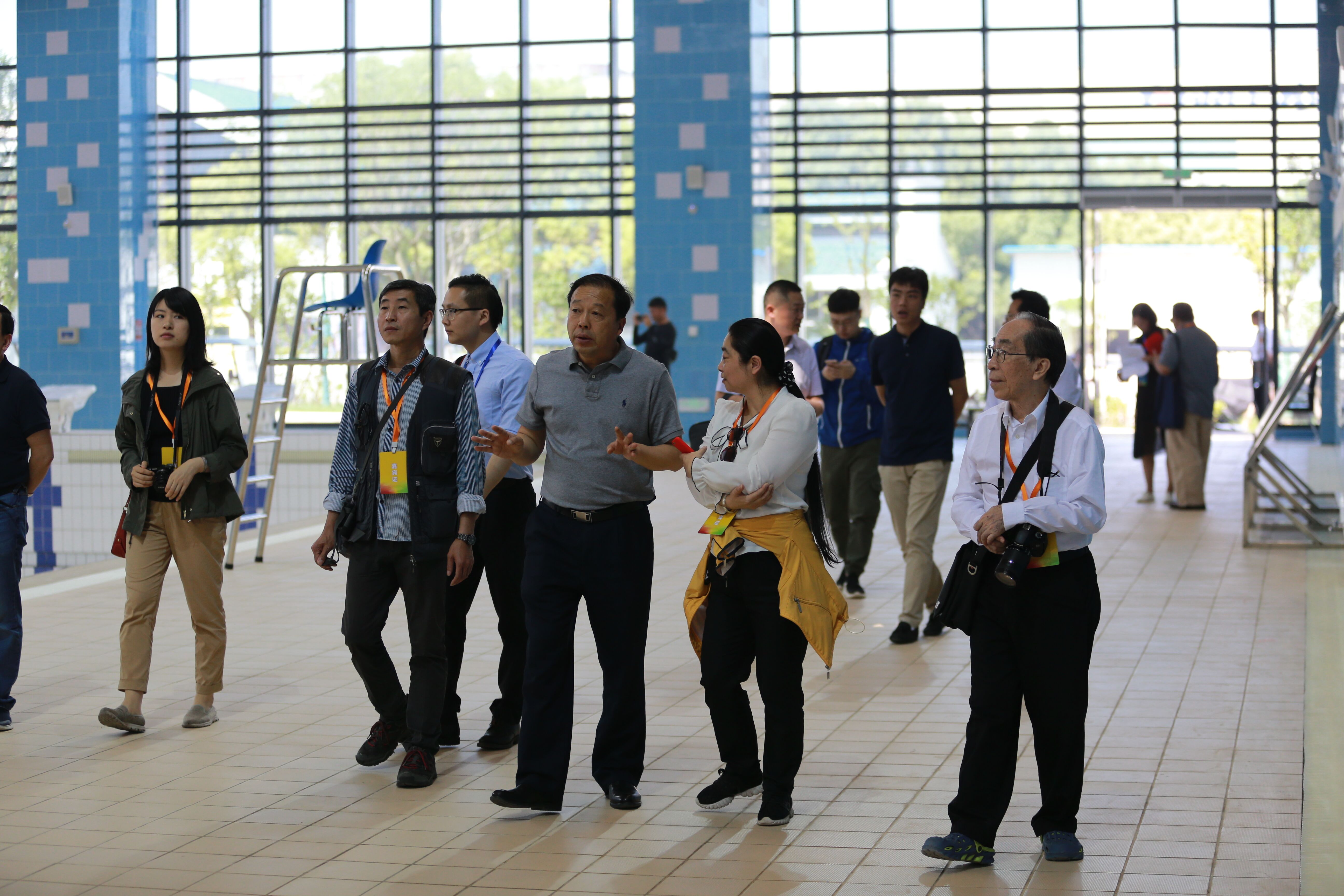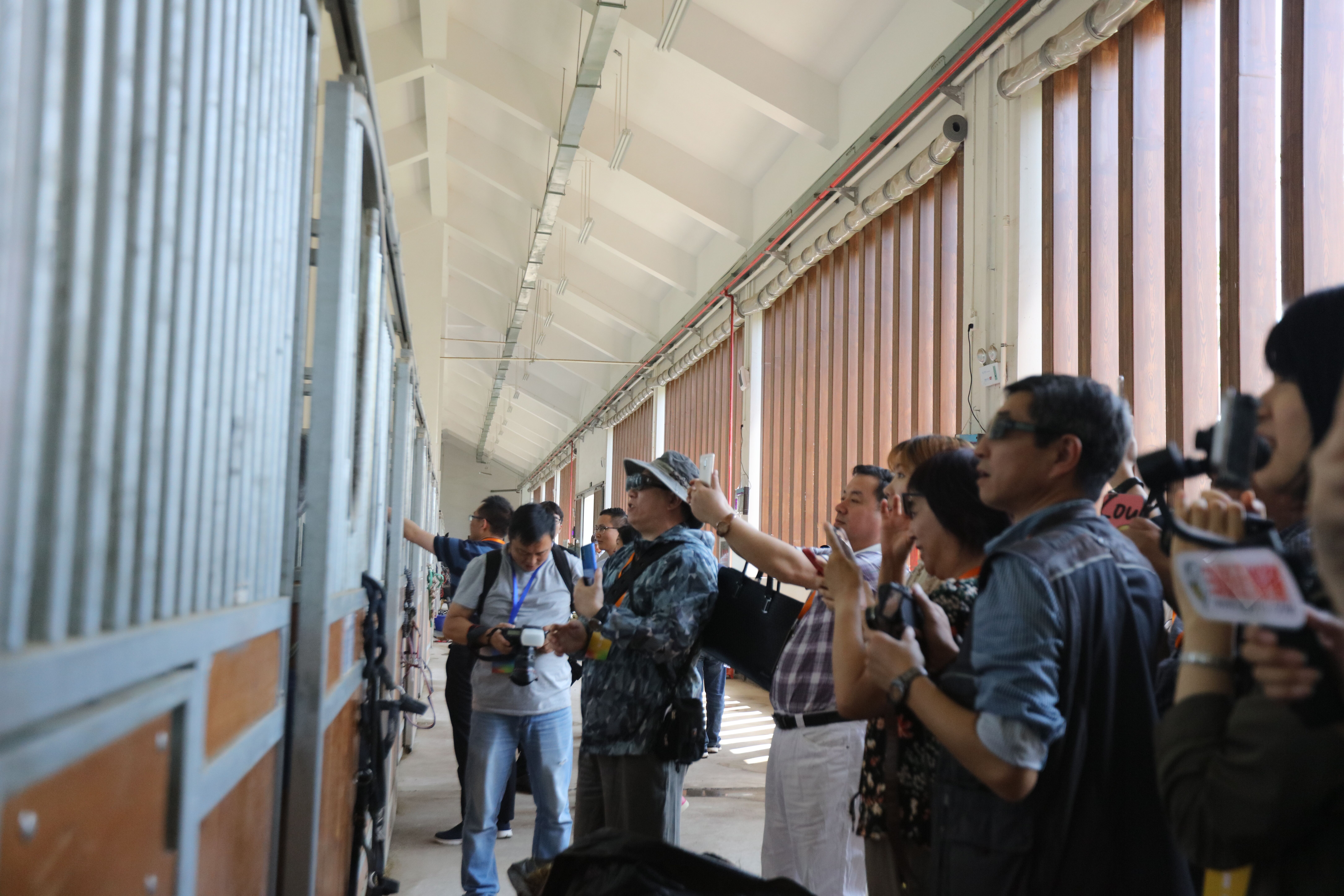 各媒体记者参观采访了我校游泳馆及驭马体育公园。在参观中,记者们聚焦我校游泳馆“黑科技”、比赛用马基本信息、马匹的生活情况、赛前马匹训练等问题。