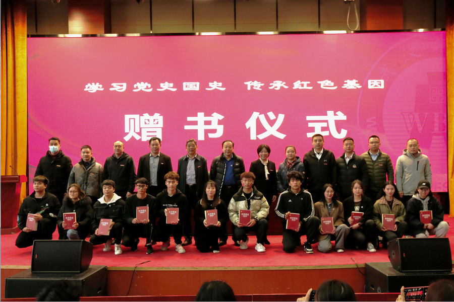班主任代表尹航、学生干部代表包玲玲分别代表教师、学生进行发言。全体学生干部代表递交倡议承诺书,参会领导、教师为其赠书。