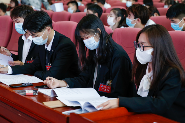 上届学生会主席王浩杰代表学生会作题为《坚定信念跟党走,奋发图强担使命》工作报告。他表示将带领全院同学坚定信念、勇担使命,积极为学校建设发展贡献青春力量。