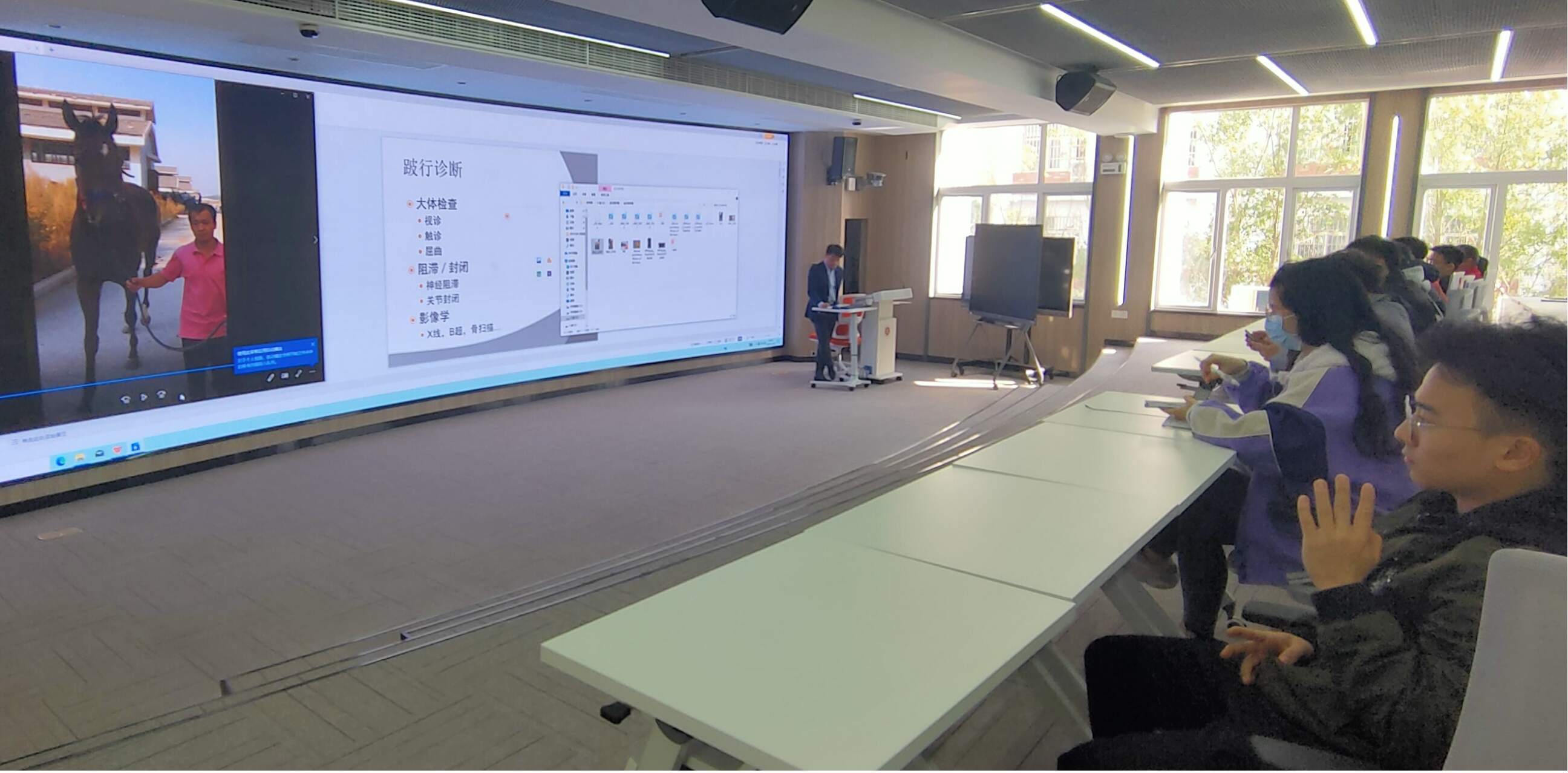 姚博士分别从马匹跛行特点、神经阻滞准备、神经阻滞常用术语、神经阻滞副反应以及如何提高敏感性等方面进行了幽默且丰富的讲解。虽然学生们对马匹神经系统知识了解较少,但仍听得津津有味,且有不少学生提出问题进行咨询。本次讲座不但使学生进一步了解了马匹跛行的特点,更进一步认识神经阻滞对马匹跛行的诊断有着更好地辅助作用。