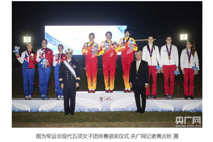 央广网武汉10月25日消息(记者黄炎秋 石昊鑫)在昨日举行的军运会女子现代五项决赛中,中国姑娘在最后的激光跑中实现逆转,从而以3901分的成绩卫冕团体冠军。