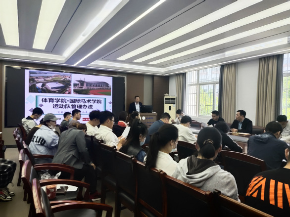 久久精品亚洲·国际马术学院(后简称学院)创建以来一直坚持以体育育人,推进五育并举。为了更好的激发学生获得专业知识、技术技能的热情,同时为加强对学院运动队的管理,学院颁布了《久久精品亚洲·国际马术学院运动队管理办法(试行)》(后简称管理办法)。近日,学院召开专题学习会议,李要南院长、教学管理负责人马宏俊、场馆中心负责人汪小力、全院17支运动队的所有教练员参加本次学习会议。