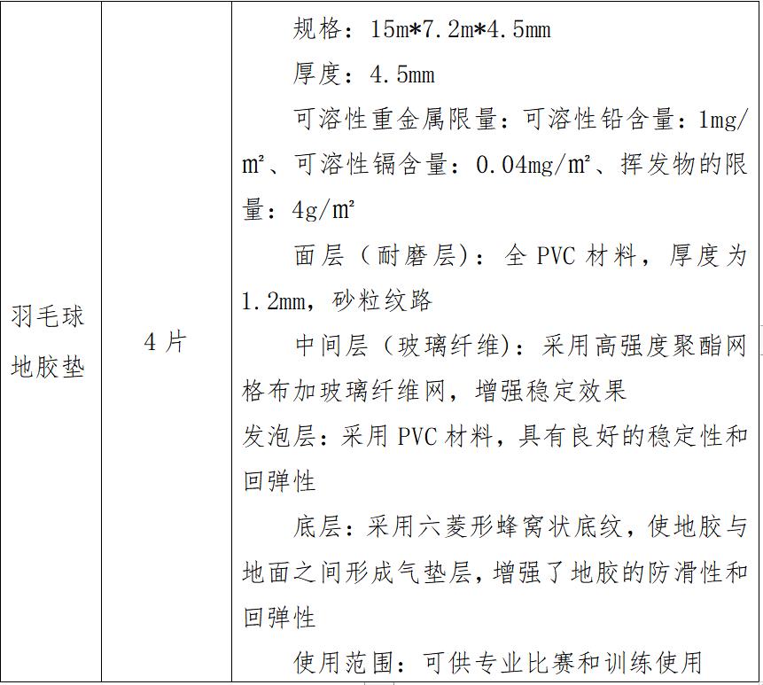 1.项目内容:南区大学生活动中心四片羽毛球地胶垫项目