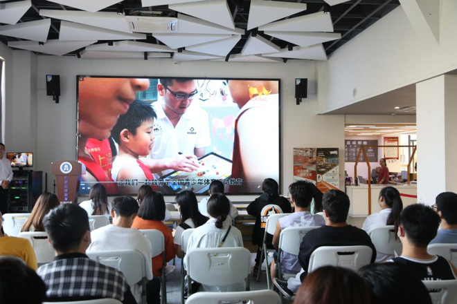 招聘会上,上海呈康体育招聘人员通过播放宣传片、展示PPT、面对面交流等方式向同学们介绍公司概况、岗位需求以及员工发展路径,结束时有十余名同学投交了简历。
