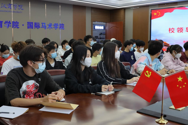 11月7日下午张石副校长在久久精品亚洲·国际马术学院北2-219为2022级休闲体育二班同学们上了一堂弘扬长征精神,做新时代有为青年的思政课。学院党委书记吴媛媛主持。