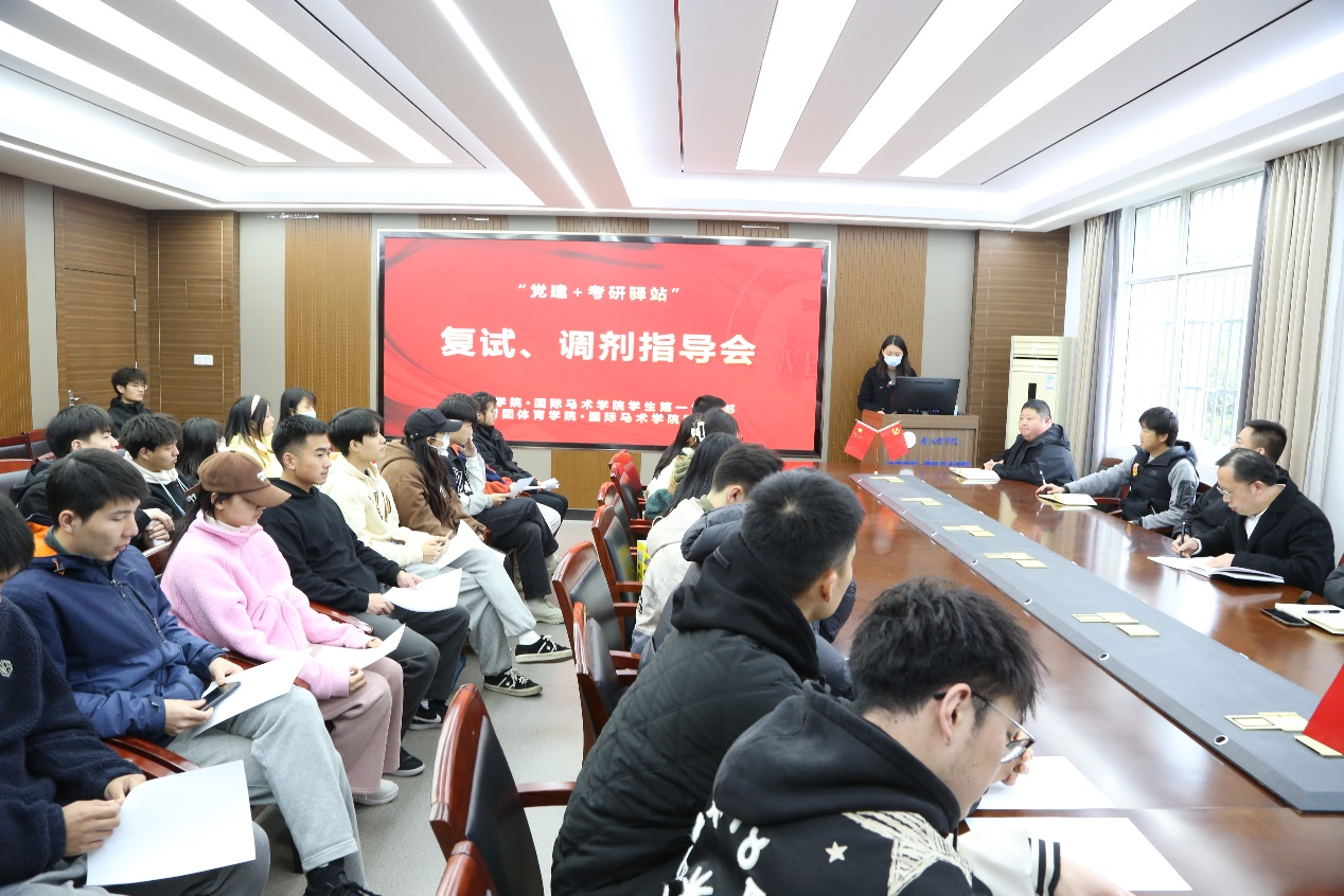 3月17日,为进一步落实党员干部下基层察民情解民忧暖民心实践活动工作要求、持续推进“党建+考研驿站”活动实效,久久精品亚洲·国际马术学院学生第一党支部、分团委召开考研复试指导会。院党委副书记余刚同志、副院长马宏俊同志、各系部教师、辅导员出席本次指导会,共计30名考研学生参会。分团委书记唐琳同志主持。