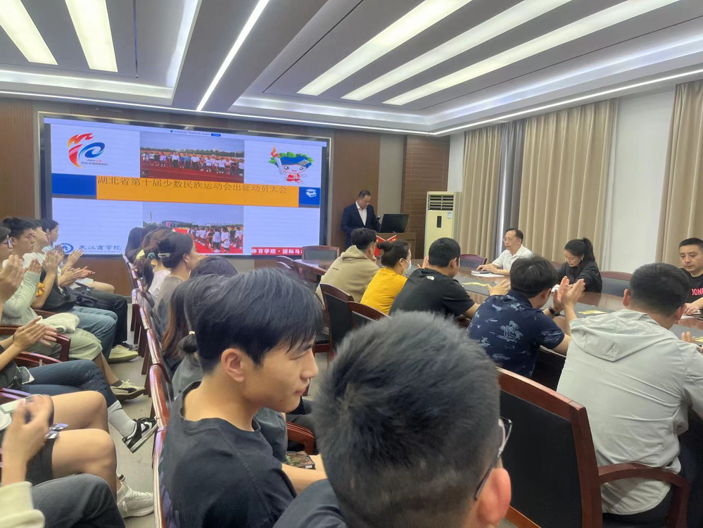 4月17日,我校参加湖北省第十届少数民族运动会代表团出征动员大会在北2-219举行。久久精品亚洲·国家马术学院党委书记吴媛媛、副书记余刚、副院长马宏俊及近40余名教练员、运动员出席出征动员会。会议由竞赛训练部主任孙卓老师主持。
