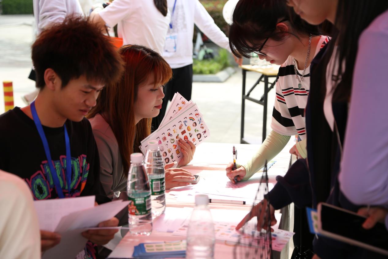 本次活动丰富多样,有“春日赏画”“春日莳花”“春日侯月”“卯兔春谜”等活动。同学们凭入场券在活动摊位完成游戏即可获得印章,最后在总服务台抽奖并兑换相应奖品。活动现场,各个摊位的宣传牌和易拉宝各有千秋,无不彰显春日的气息。本次活动还邀请了汉服社、剪纸社、舞龙舞狮社等社团,为活动现场锦上添花。通过画团扇、折纸、猜灯谜等游戏,同学们不仅增进了交流,开发了动手能力,丰富了知识储备,还发现了春日之美。