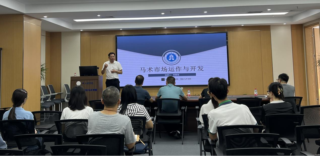 李要南教授率先做出说课示范,其依据丰富的教学实践经验和谆谆善诱的教学方法分享,围绕本学期新开课程《马术市场运作与开发》从教材及参考书、教学条件、学情分析、教学方法、教学目的等8个方面为青年教师带来生动一课。随后郭赢芳、汪洋等14位教师围绕说课课程,从教材、学情、课程定位与教学目标、课程内容设计、课程实施与资源、教学方式和方法、课程考核与评价等方面进行15分钟以内的现场说课。说课教师教态落落大方,语言表达轻松流畅,其独到的教学环节、巧妙的教学设计,让说课环节异彩纷呈,为教学提供了新思路和新方法,充分展现了青年教师良好的理论素养和教研能力。每位教师说课结束后,姜明教授等评委专家分别从教学理念、教学内容、课程思政、教学过程、教学效果等方面进行了细致入微的点评,并给出建设性意见与建议。青年教师们表示深受启发,受益匪浅,将按照评委老师们的宝贵意见,继续完善教学教法,努力提高自身教研能力。