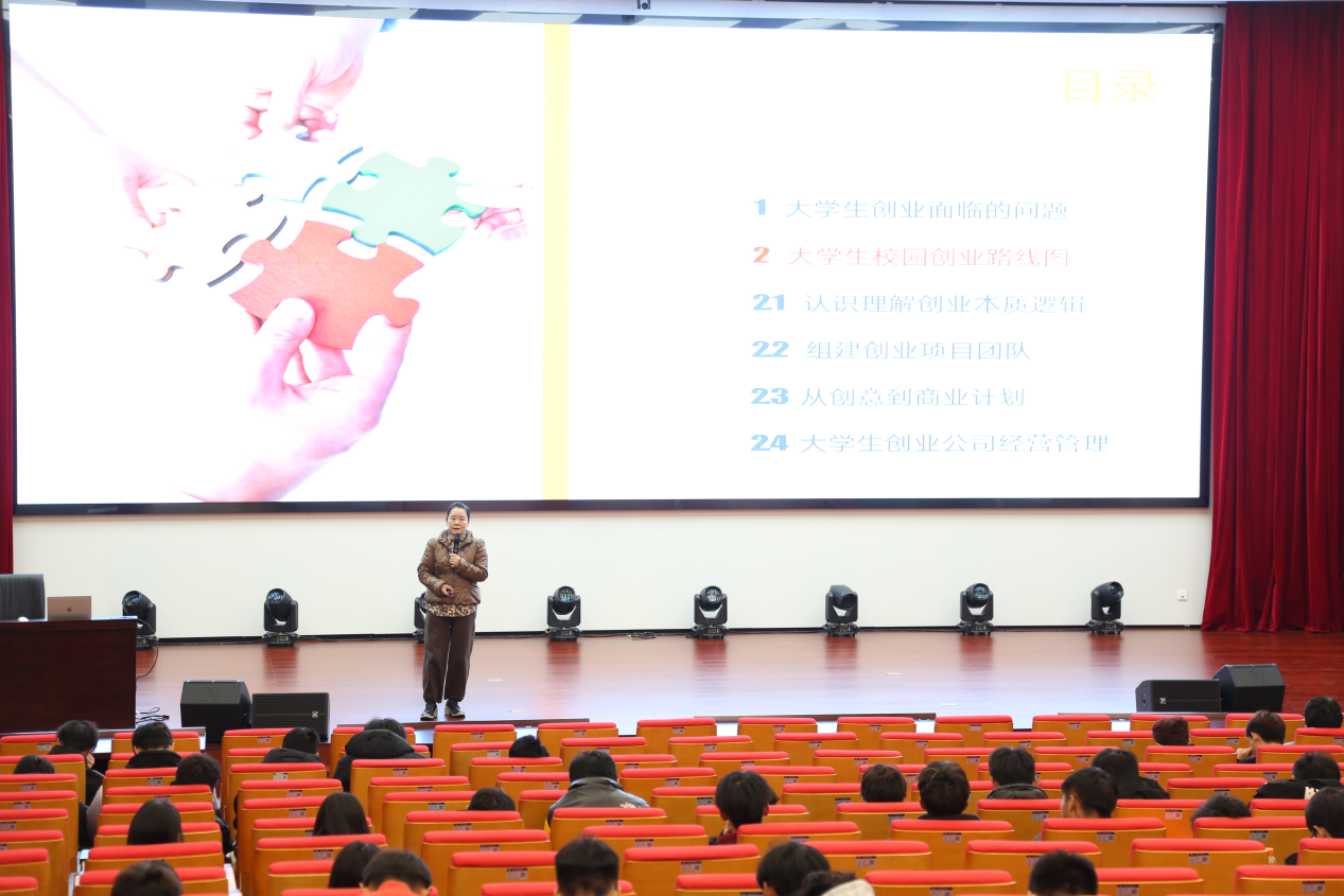 她分析大学生参加创新创业大赛项目的关键因素和技巧,并通过分享自己的经历,总结创新创业的整体思路,围绕大学生培养的创新创业能力,和抓住新创业机遇这一重要内容,重点解读了当前的创业趋势,引导同学们对自己进行反思定位,鼓励大家踊跃投身创新创业,积极参赛。