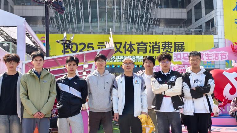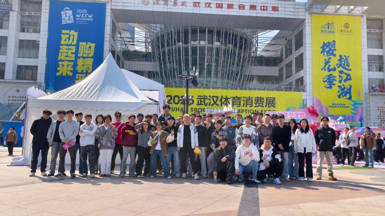 (师生在武汉体育消费展前的合影)