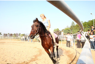 长江网2013年10月10日:90后匈牙利女骑士赴武汉高校教驯马